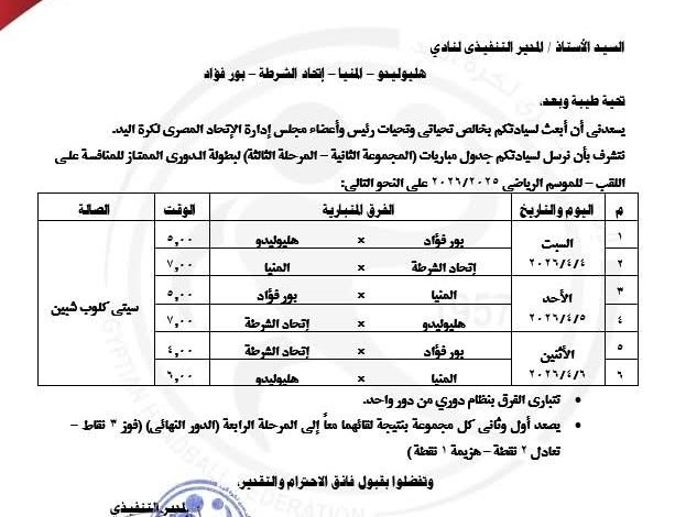 المنيا ضد هليوليدو .. ٦ م