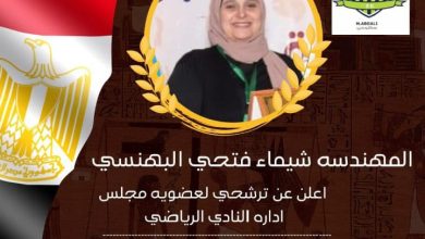 شيماء فتحي البهنسي تعلن ترشحها لعضوية مجلس إدارة نادي محلة ابوعلي